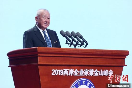11月4日,2019两岸企业家紫金山峰会在江苏南京举行。图为台湾工商协进会理事长、台湾玻璃工业股份有限公司董事长林伯丰在主题演讲环节发言。中新社记者 泱波 摄